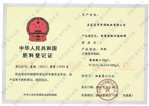石家莊市豐碩肥業有限公司是一家集新型肥料的研發、制造、營銷、服務于一體的高新技術企業,公司自2008年創辦以來,一直致力于新型肥料的技術研發和市場推廣。公司組建了豐碩新型肥料研究中心(院士專家企業工作站),自主知識產權研發團隊專業科研人員20余人,獲得了多項肥料國家發明專利。公司目前已擁有發酵類有機肥、微生物菌劑、生物有機肥、土壤調理劑、大量元素水溶肥、含腐植酸肥料、含氨基酸肥料、中微量元素肥料等8大品類,“金維克”、“豐碩沃農”等2大自有品牌,擁有20多個暢銷品種。目前,我公司已經通過了“ISO9001 質量管理體系認證”、“ISO14001 環境管理體系認證”、“OHSAS18001 職業健康管理體系認證”。...